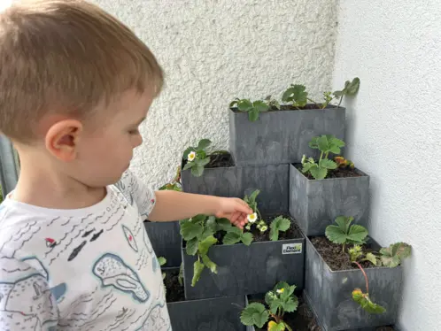 Jahodová pyramida na balkoně: Jáchym a Jonáš pěstují své první jahody