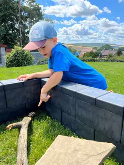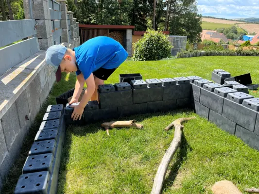 Chtěli jsme jim postavit nějakou ohradu, ze které by nám už neutekly. U babičky jsme stavěli pískoviště ze stavebnice, která je jako velké lego. Ohrada je velmi podobná jako pískoviště, jen trochu menší.