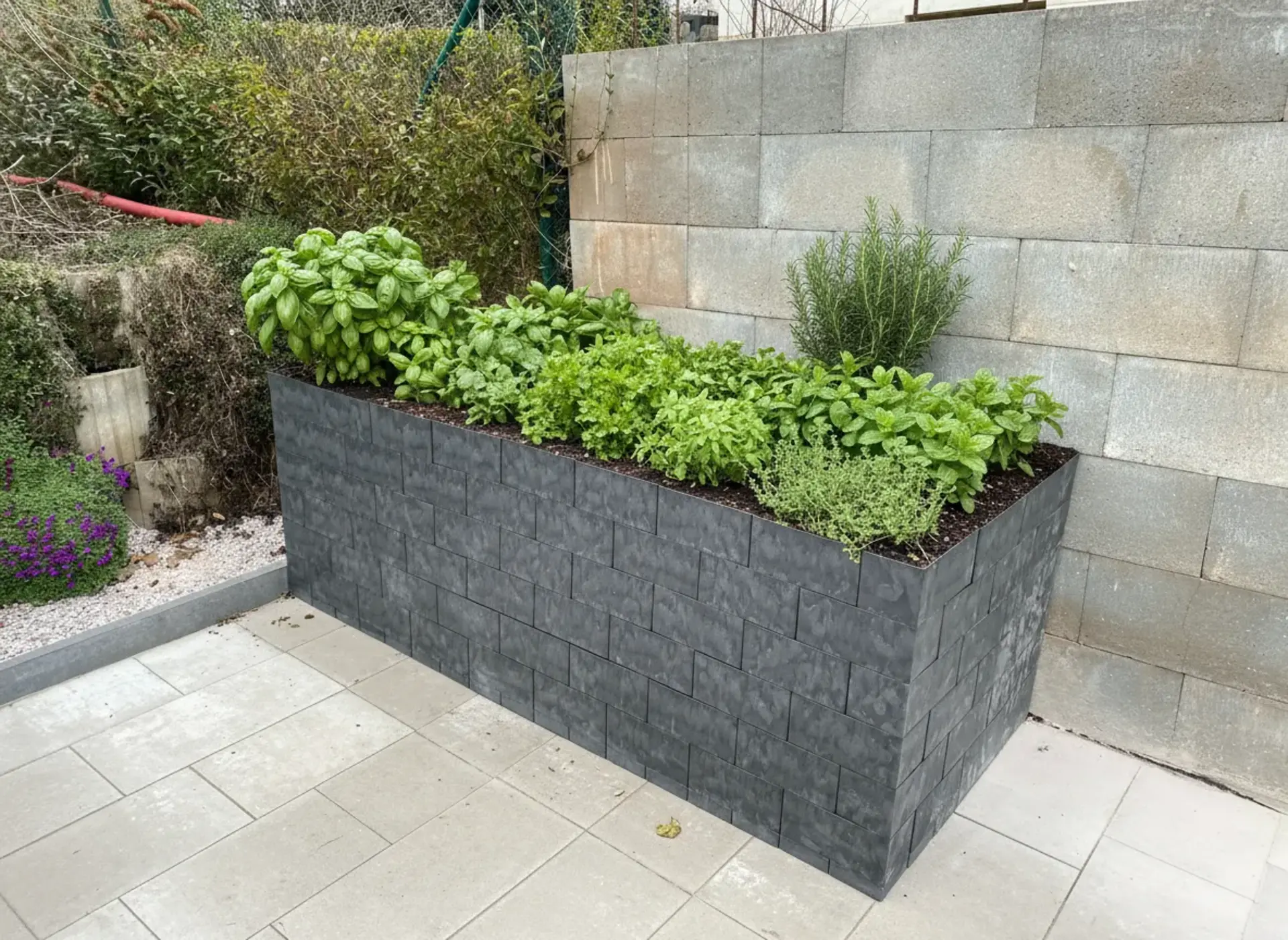 Říkal jsem si, že když už s tím nejde nic udělat stavebně, zkusím to vyřešit chytřeji. Napadlo mě využít stavebnici Flexi Element a zeď jednoduše „schovat“ za vyvýšený záhon.