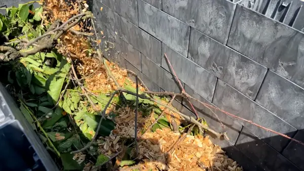Jako první vrstvu jsem dal na dno dřevěné větve a štěpku, které pomáhají odvádět přebytečnou vodu. Na ně následovala vrstva bioodpadu ze zahrady, který záhonu dodá živiny. Potom přišla vrstva kompostu.