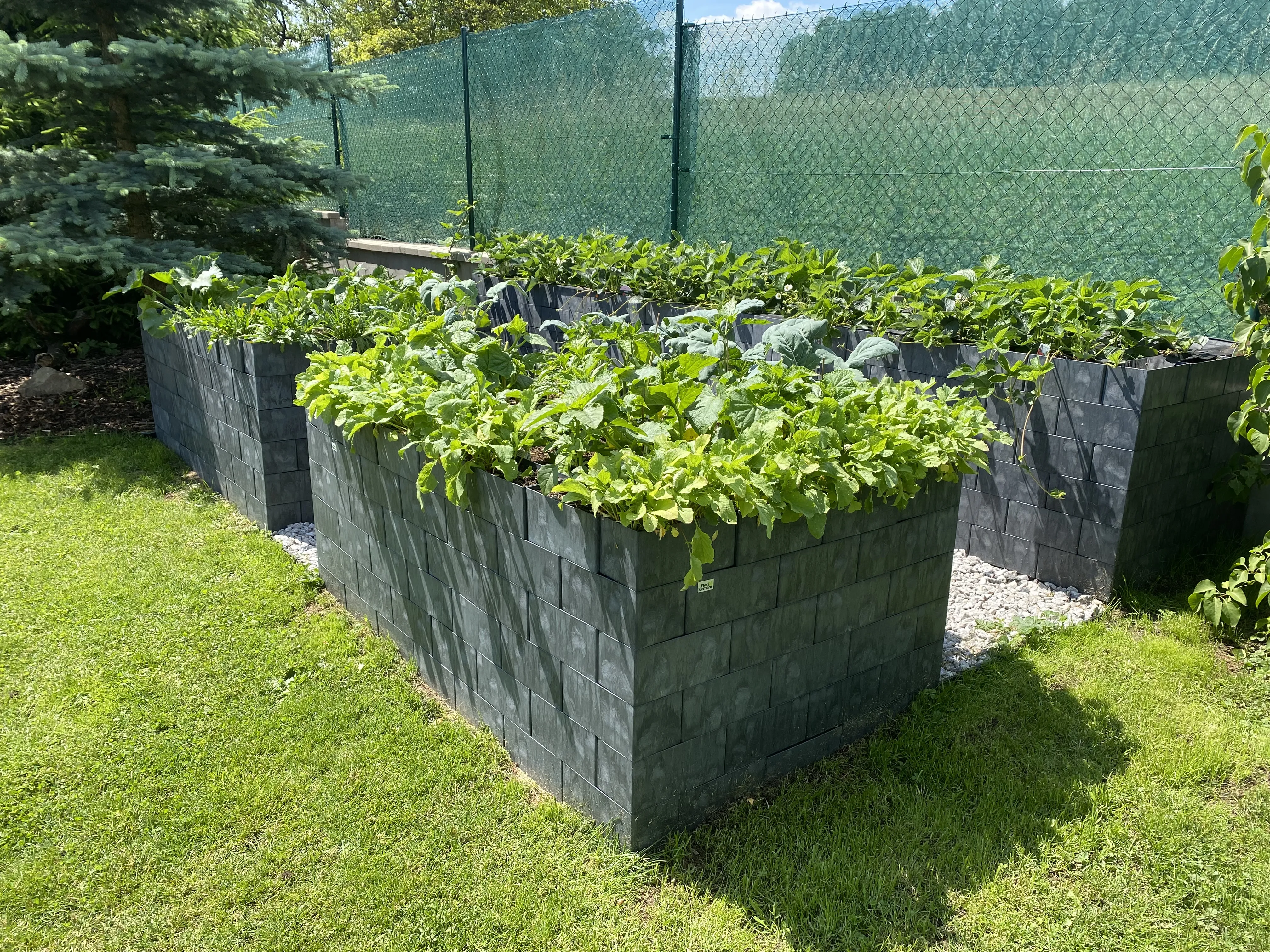 Pod vyvýšený záhon jsem nejdřív položil síť proti hlodavcům, aby se do záhonu nedostali nezvaní návštěvníci. Potom jsem se pustil do stavby obvodu. Babička chtěla klasický obdélník, takže volba byla jasná. Výhodou stavebnice Flexi Element ale je, že z ní jde postavit téměř jakýkoliv tvar vyvýšeného záhonu.