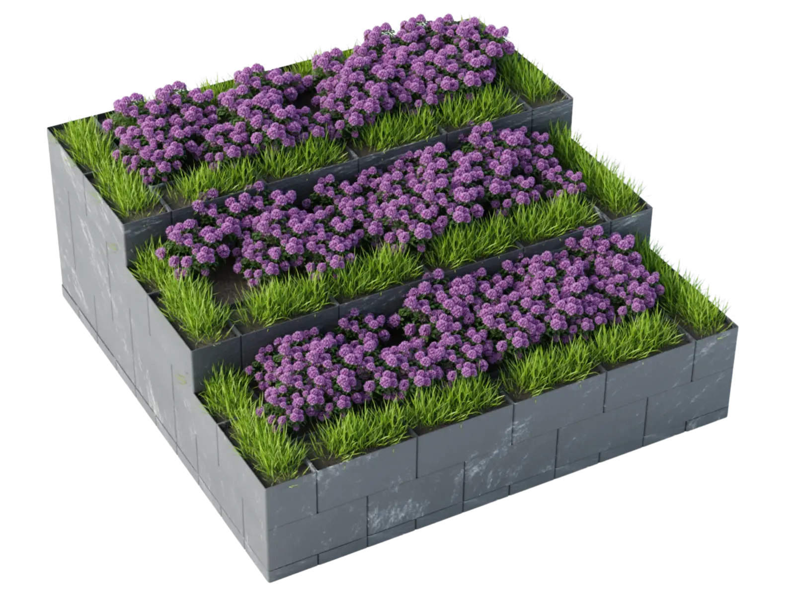 Flexi Element kaskádový záhon je složen z modulární stavebnice, která umožňuje přizpůsobit výšku i délku záhonu konkrétnímu terénu a vašim představám. Vyvýšený záhon kaskáda drží tvar i při plném zatížení zeminou a je vhodný pro dlouhodobé pěstování zeleniny, bylinek i větších plodin.