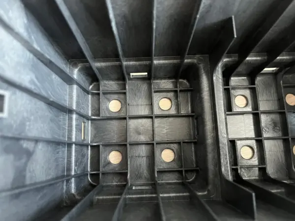 Uvnitř kostky se nachází výztužná žebra, která plní hned dvě funkce. Zpevňují samotnou kostku a zároveň vystřeďují protikus, který se do kostky zasouvá při stavbě vyšších pater.