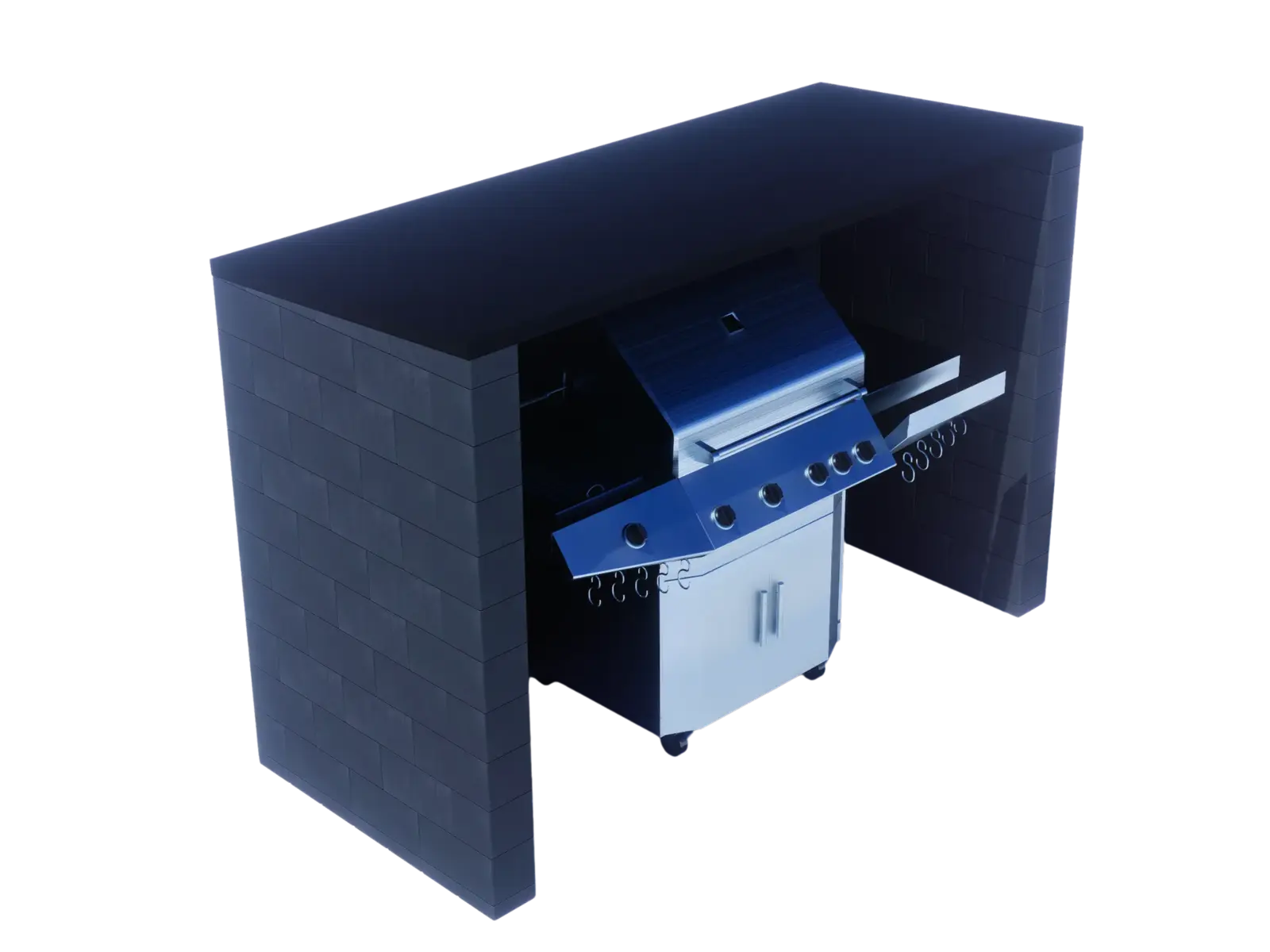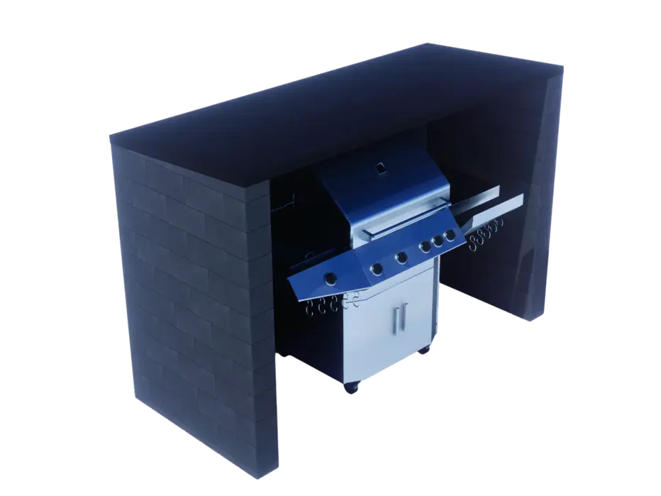 Přístřešek vznikl ze stejných kostek jako vyvýšené záhony. Jednotlivé díly lze řezat, vrtat, šroubovat a snadno spojovat. Díky tomu si můžete přizpůsobit šířku, výšku i hloubku přístřešku přesně podle velikosti grilu. Pro vyšší stabilitu lze spodní část sešroubovat nebo zatížit.